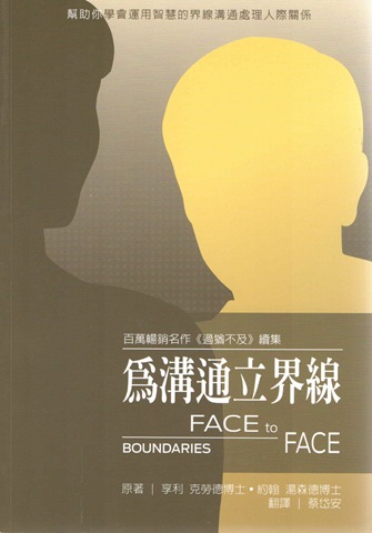 暢銷名作《過猶不及》的姊妹作,你將學到為甚麼需要界線對談,而不是逃避問題,並會發現健全的界線對談的要素,如:設身處地、澄清問題和成為一個改變的推動者等。書中許多「對話」的範例教導你如何有效率地跟配偶、約會對象、同事、以及父母、子女、掌權者等一起去面對衝突、正視問題。同時提供許多實用的秘訣讓你事半功倍地把真正的需要或內心的渴望去與人適度地溝通。